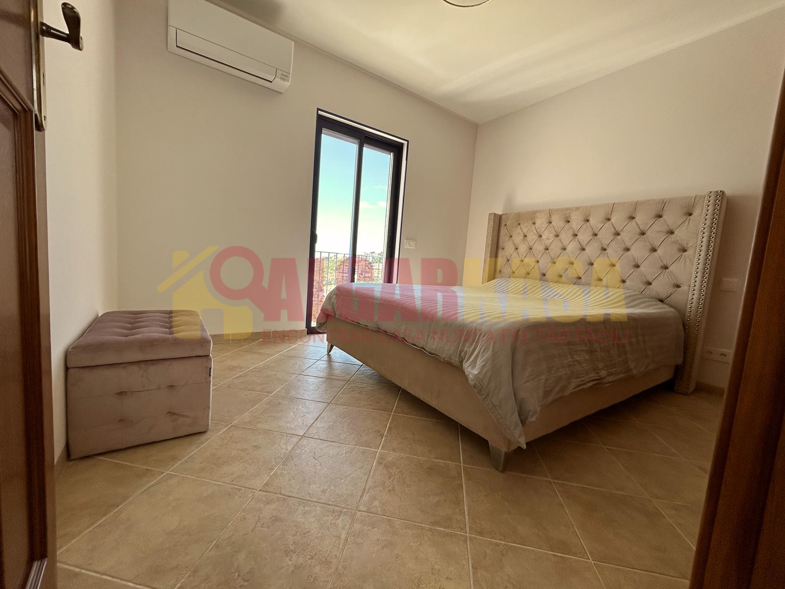 1 quarto com cama de casal e vista mar