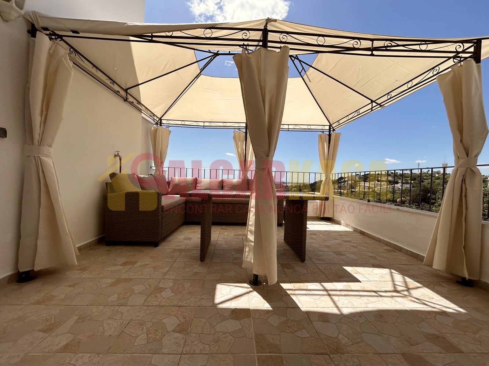 Terraço vista mar, com mobiliário de exterior para relaxar a ver o mar e por do sol.